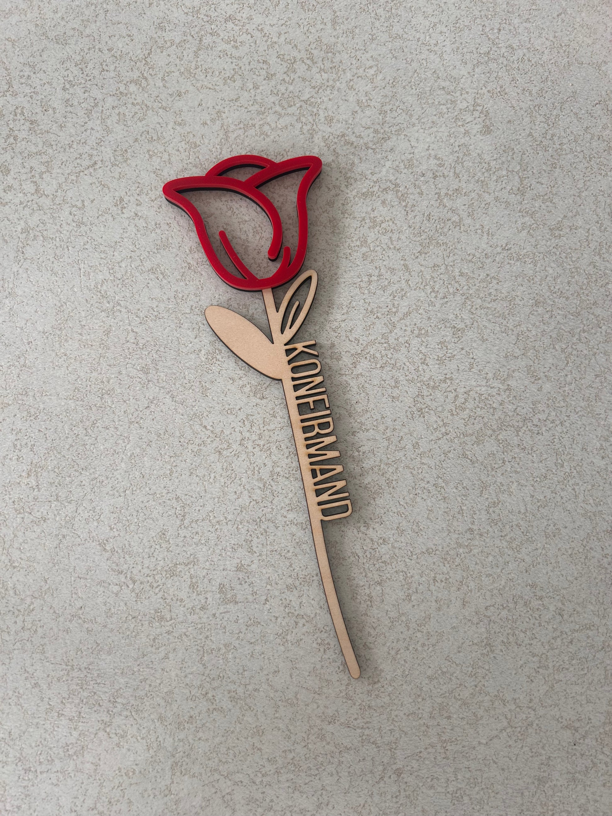 Giv en personlig gave til en du holder af med vores laserskåret rose med Konfirmand udskåret på siden af bladet. Rosen er lavet i en smuk rød akryl 🌹