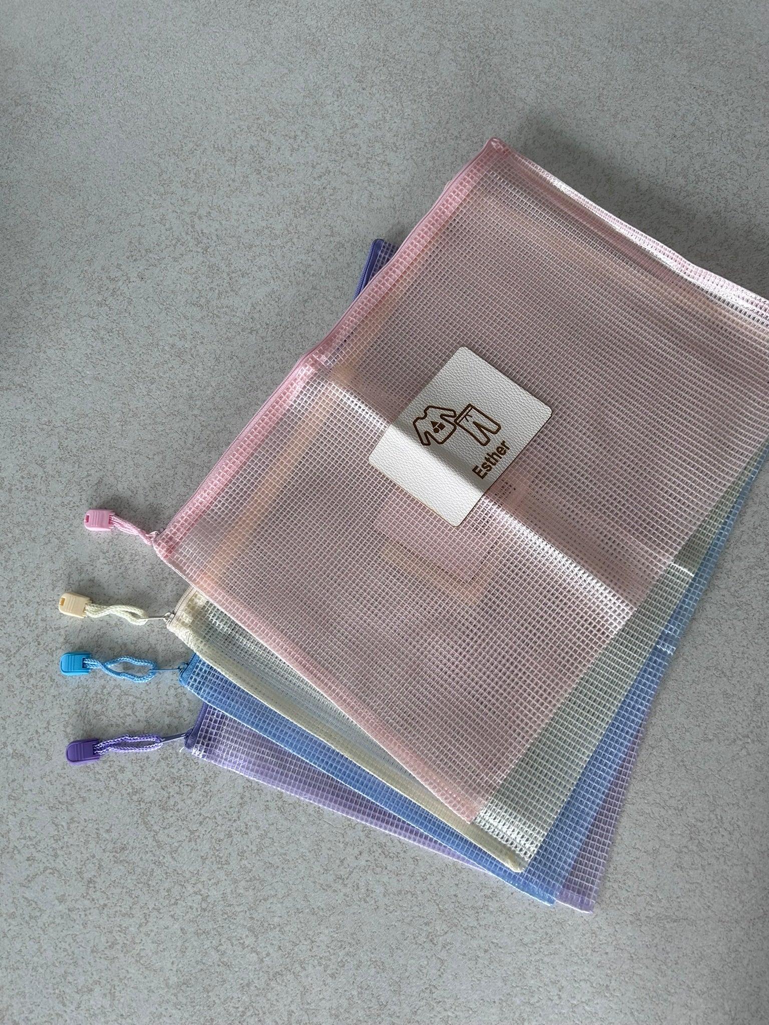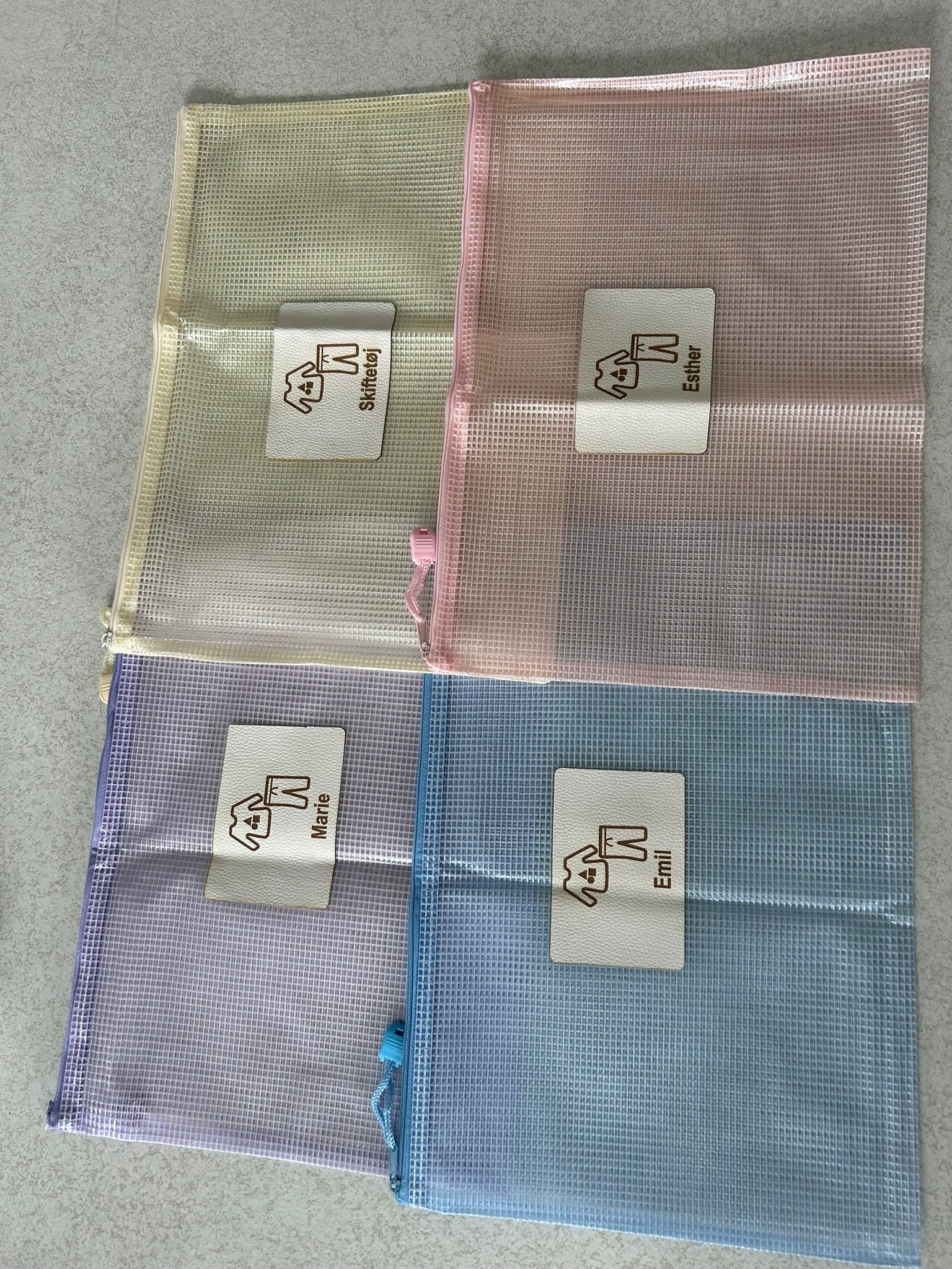 Skiftetøj poserne er lavet med lynlås, som gør det nemt for dit barn selv at åbne poserne. De er lavet af PVC-materiale af høj kvalitet. Skriftetøjsposerne er lavet i et netdesign, som giver dig mulighed for at se indholdet igennem posen med et øje, så du hurtigt og effektivt kan finde det, du leder efter.