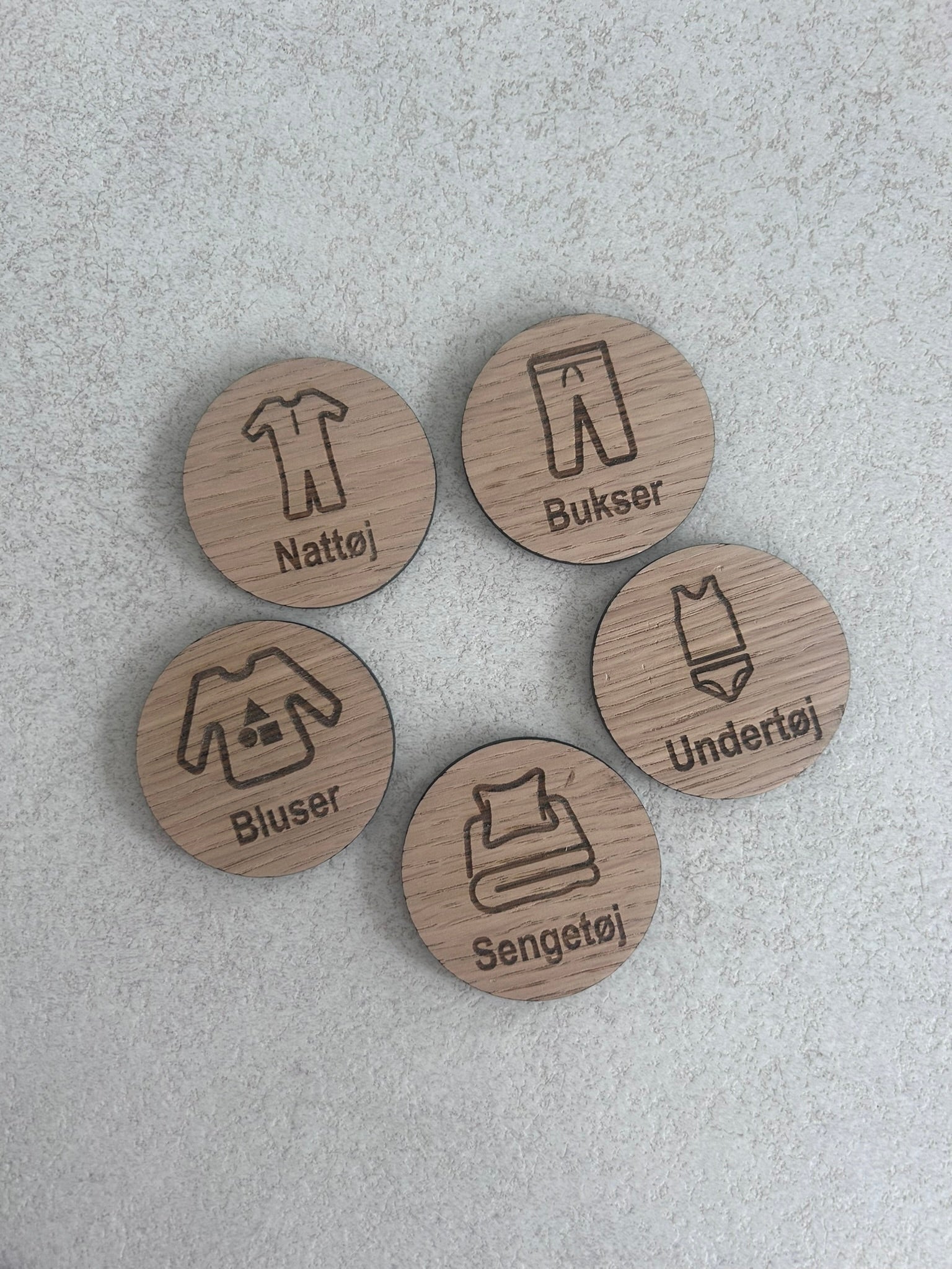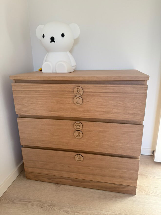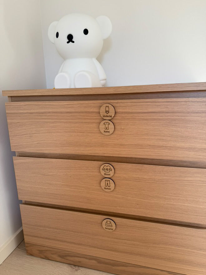 Hjælp dig og dit barn med at få hurtigt og nemt overblik over tøjskabet lavet i træfiner eller mdf i ø5,6 cm 🪵🧩🐘