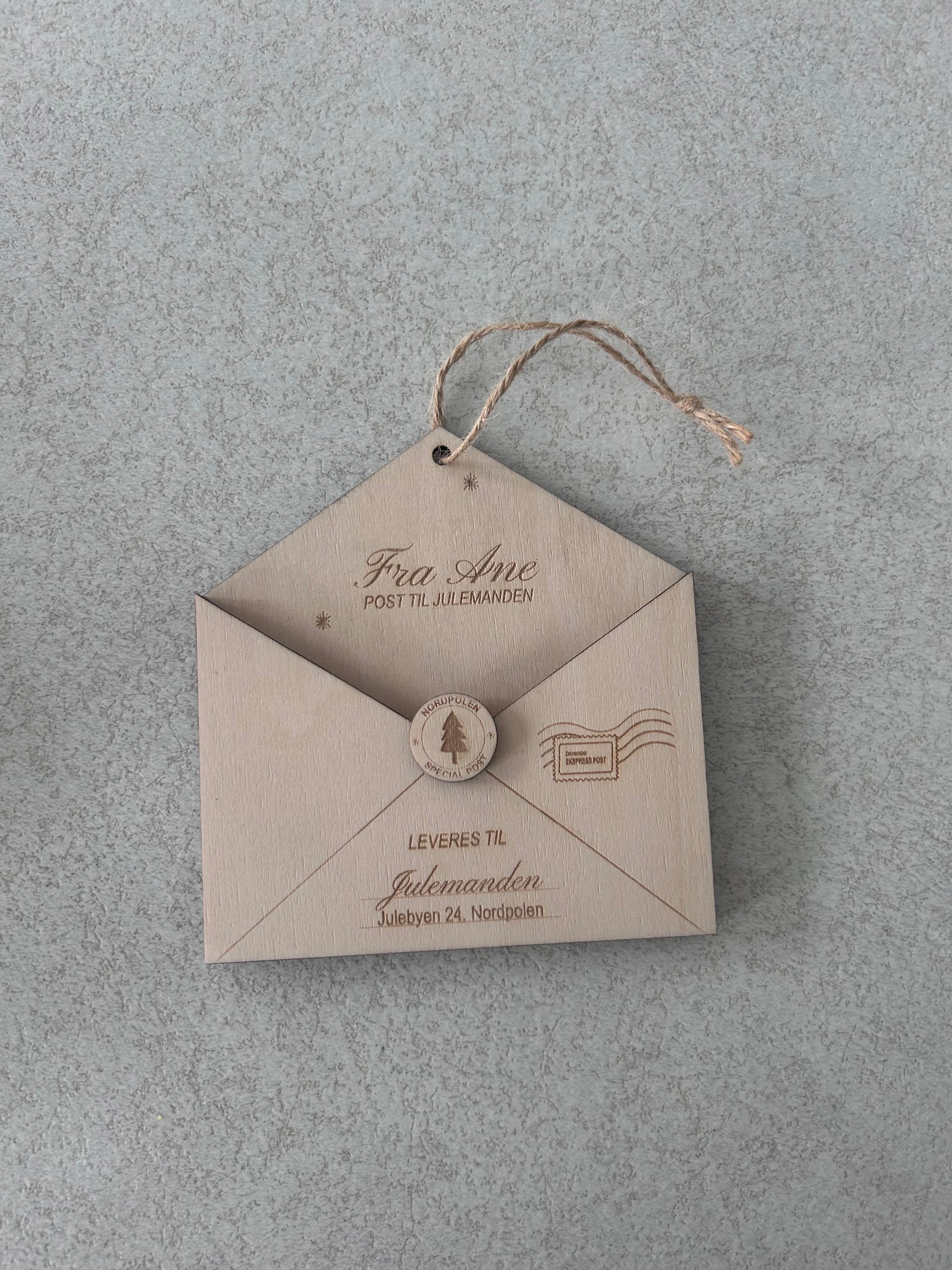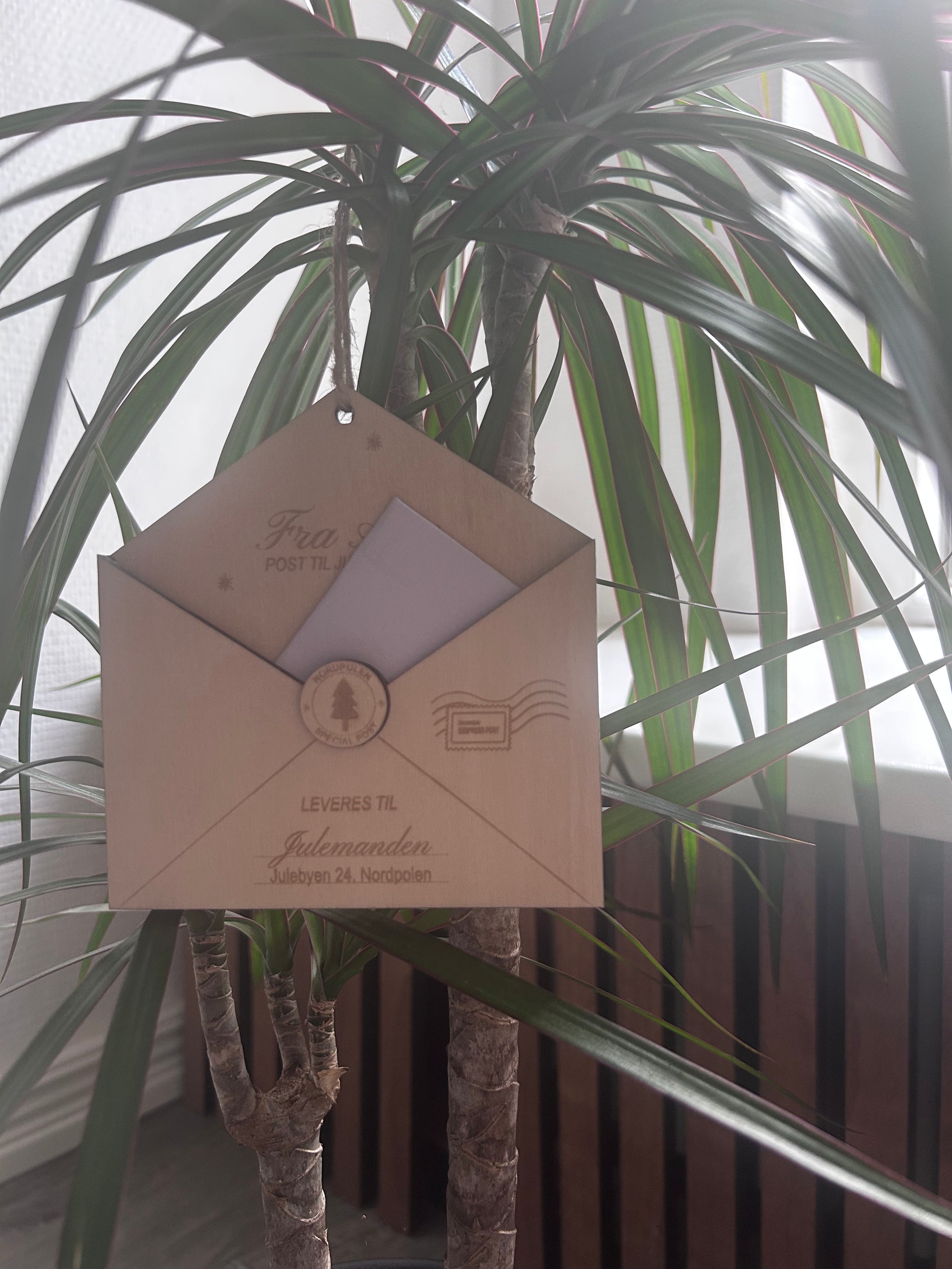 har du et juleglad barn eller person, så forkæl dem med denne kuvert, hvor der kan ligges post til julemanden.