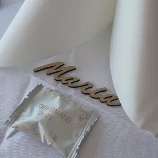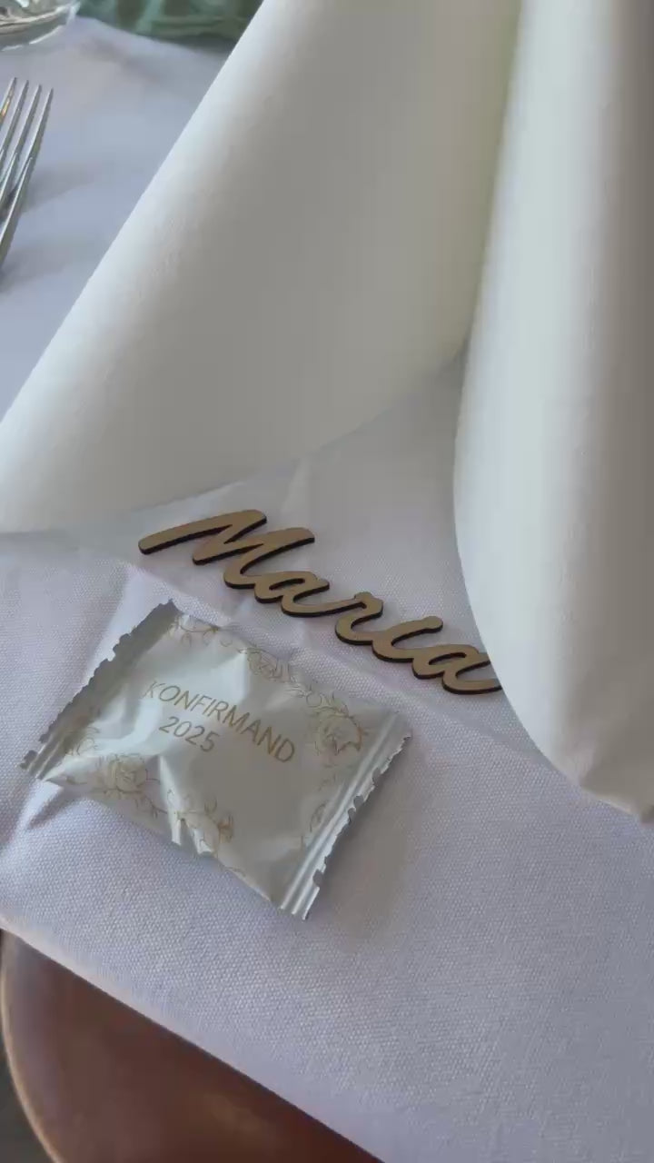 De smukkeste bordkort i udskåret i træ. Navnene er lavet i MDF, brik, eg eller valnød i 2,4 cm i højden⛪️ Skal du holde Bryllup, konfirmation, barnedåb eller noget helt andet er det et nemt og simpelt bordkort, som gæsterne kan tage med hjem og mindes dagen 🙌🏼